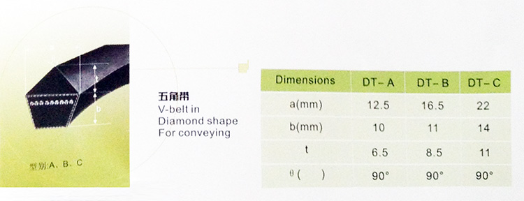 五角帶具良好的耐溫性,耐油及抗靜電性;其頂部三角形設計可使輸送產品時有最小的接觸面。